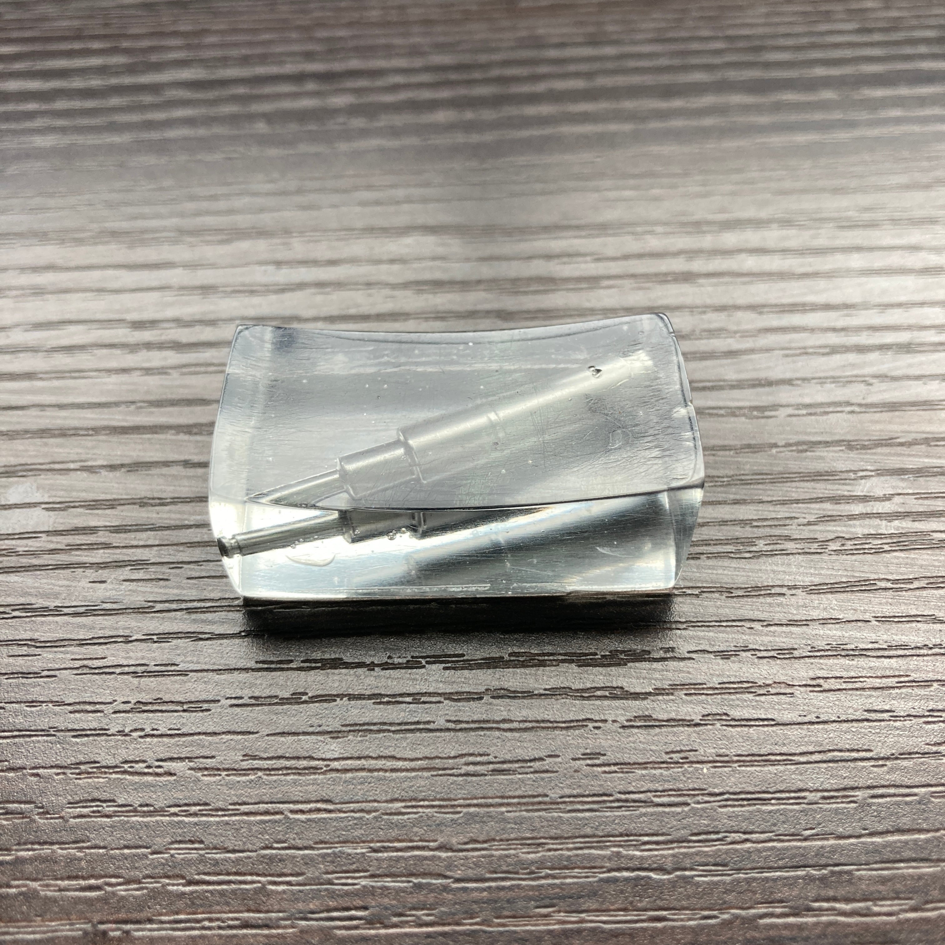 就労継続支援B型事業所の解体作業の中から出てきた「鉄棒」をレジンで閉じ込めて制作した箸置きです。