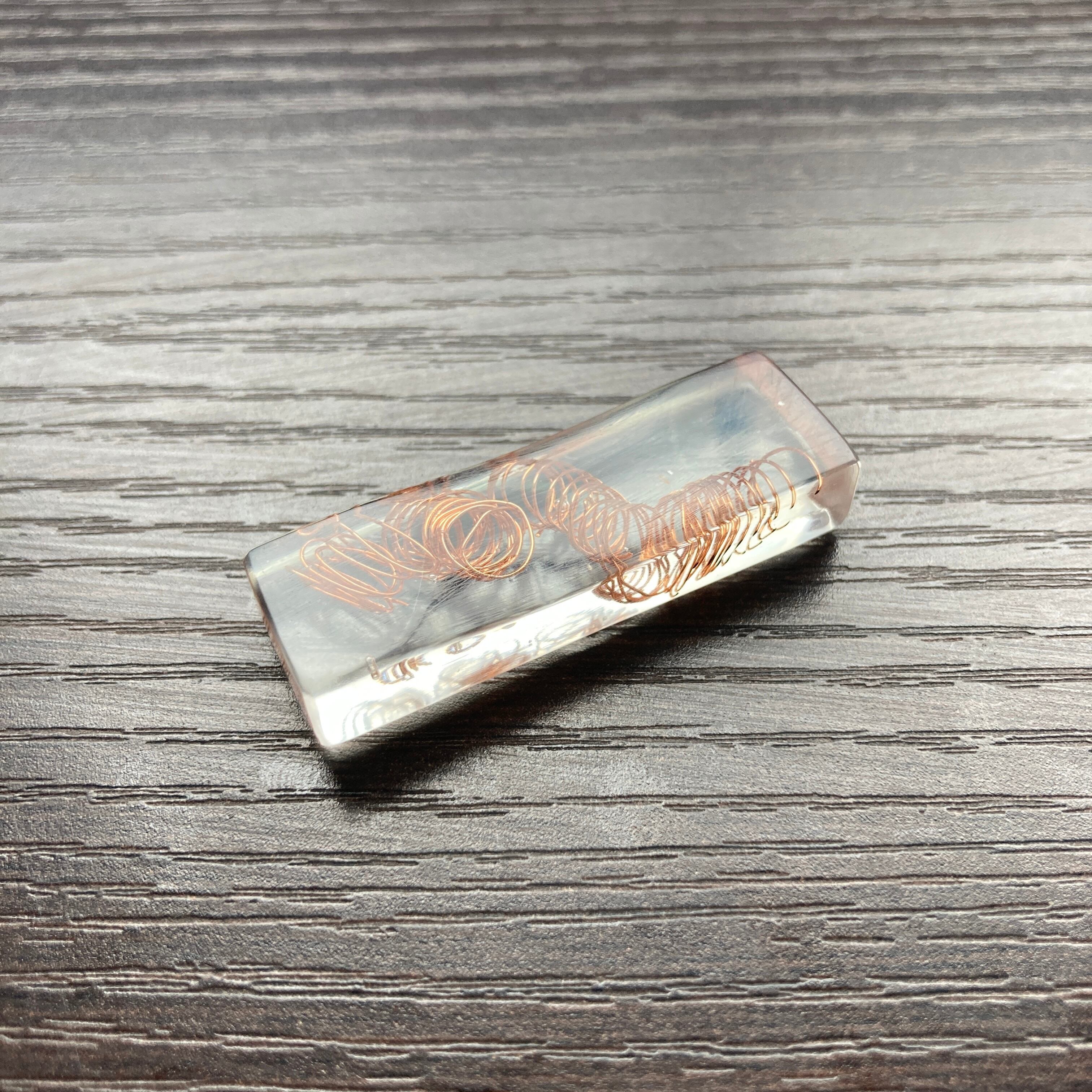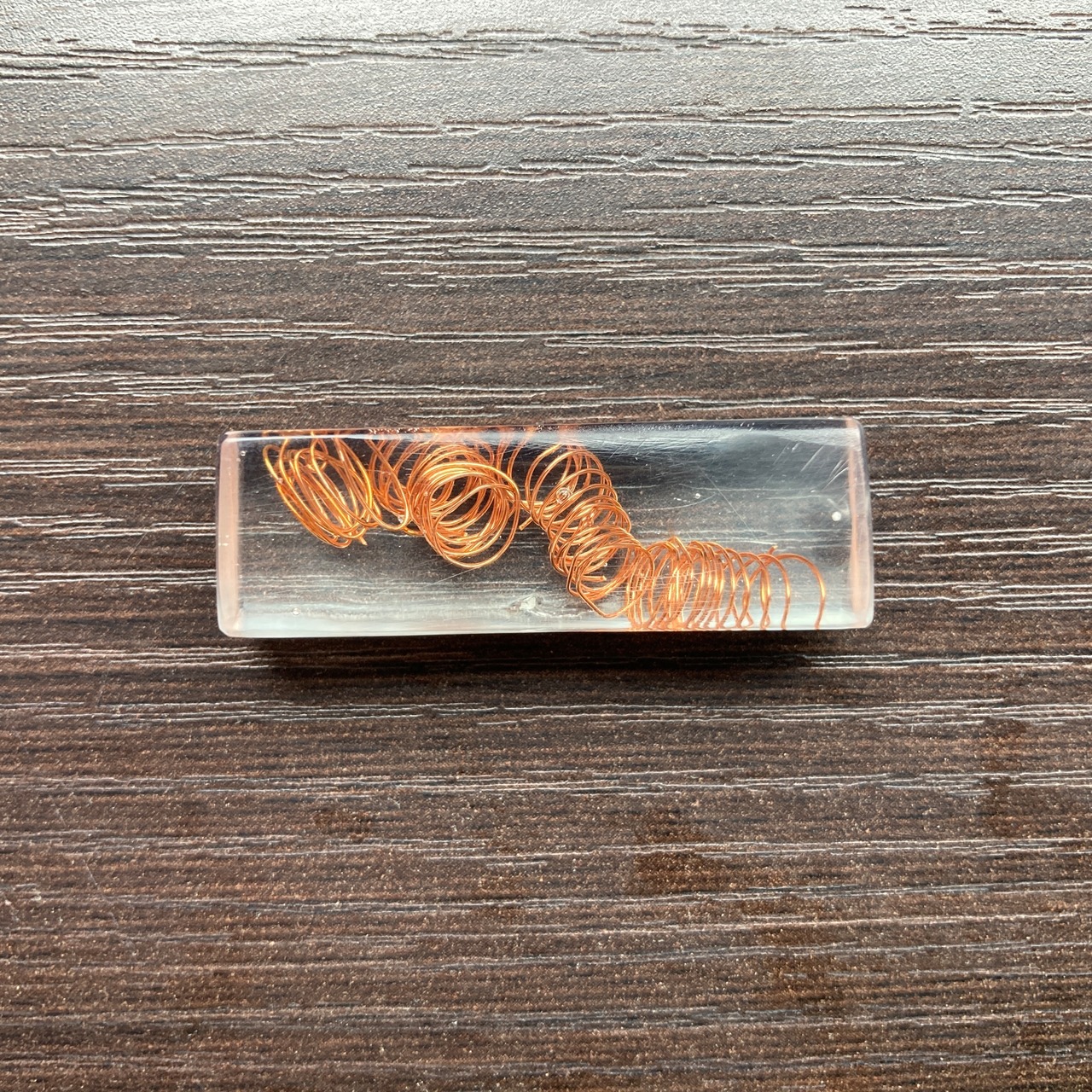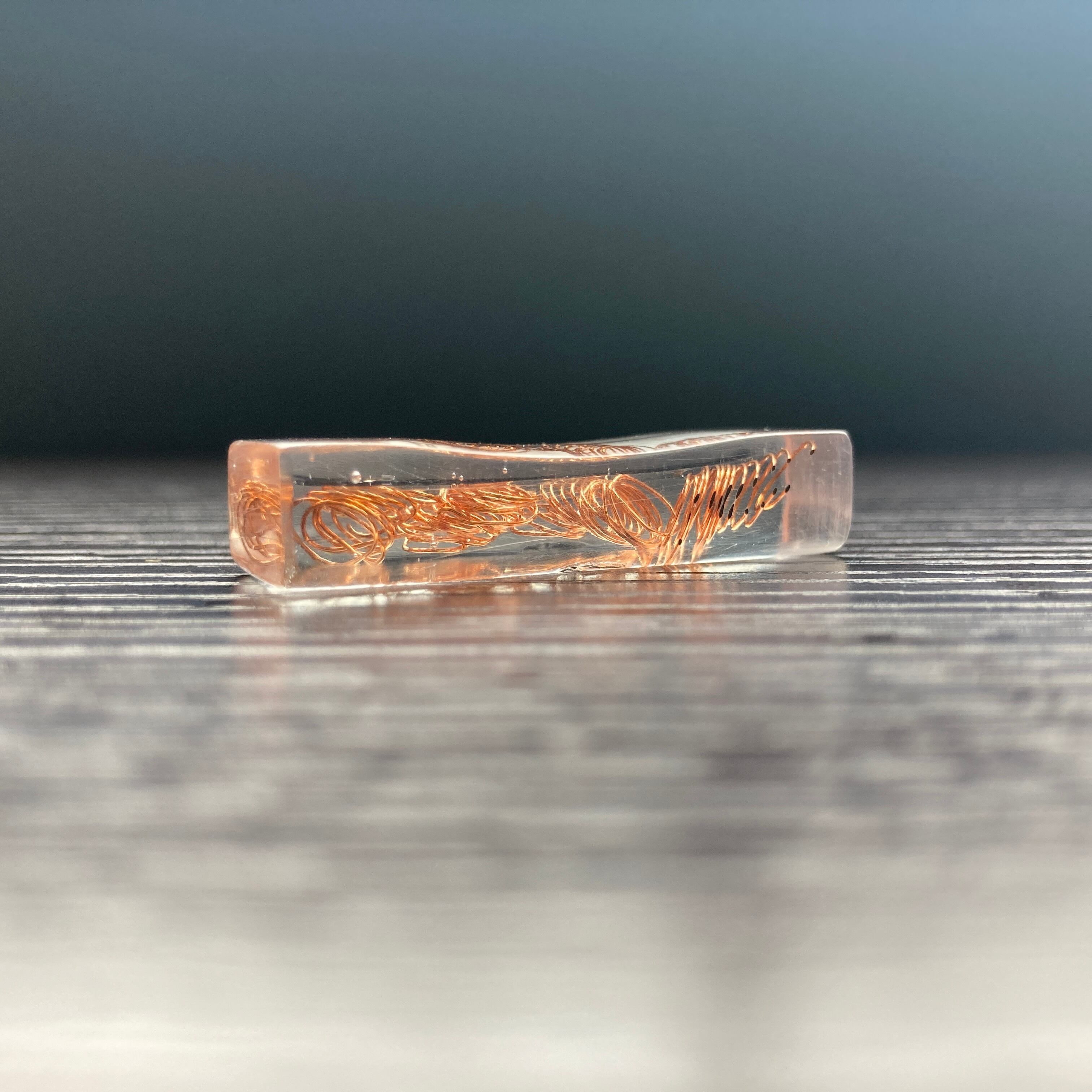 就労継続支援B型事業所の解体作業の中から出てきた「銅線」をレジンで閉じ込めて制作した箸置きです。