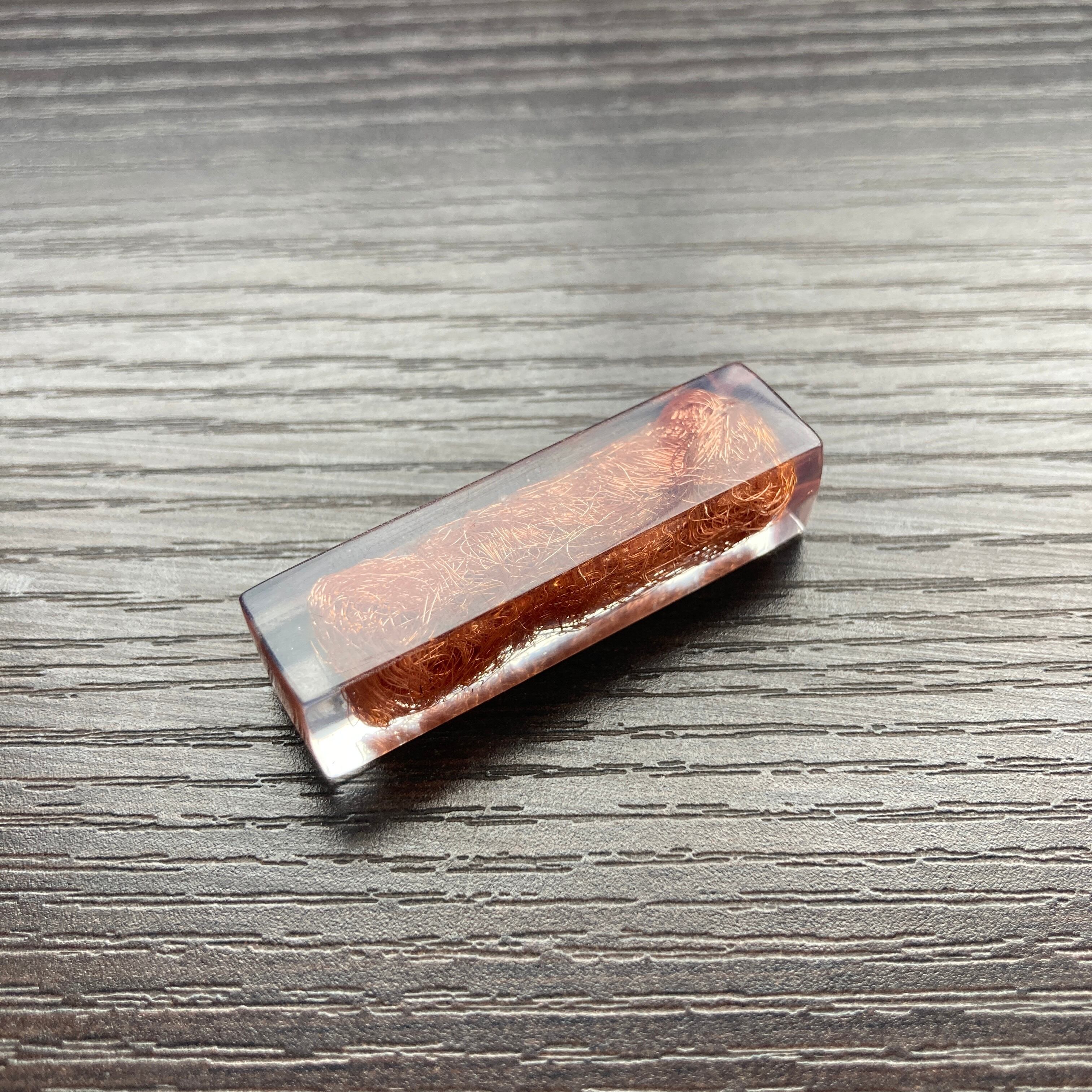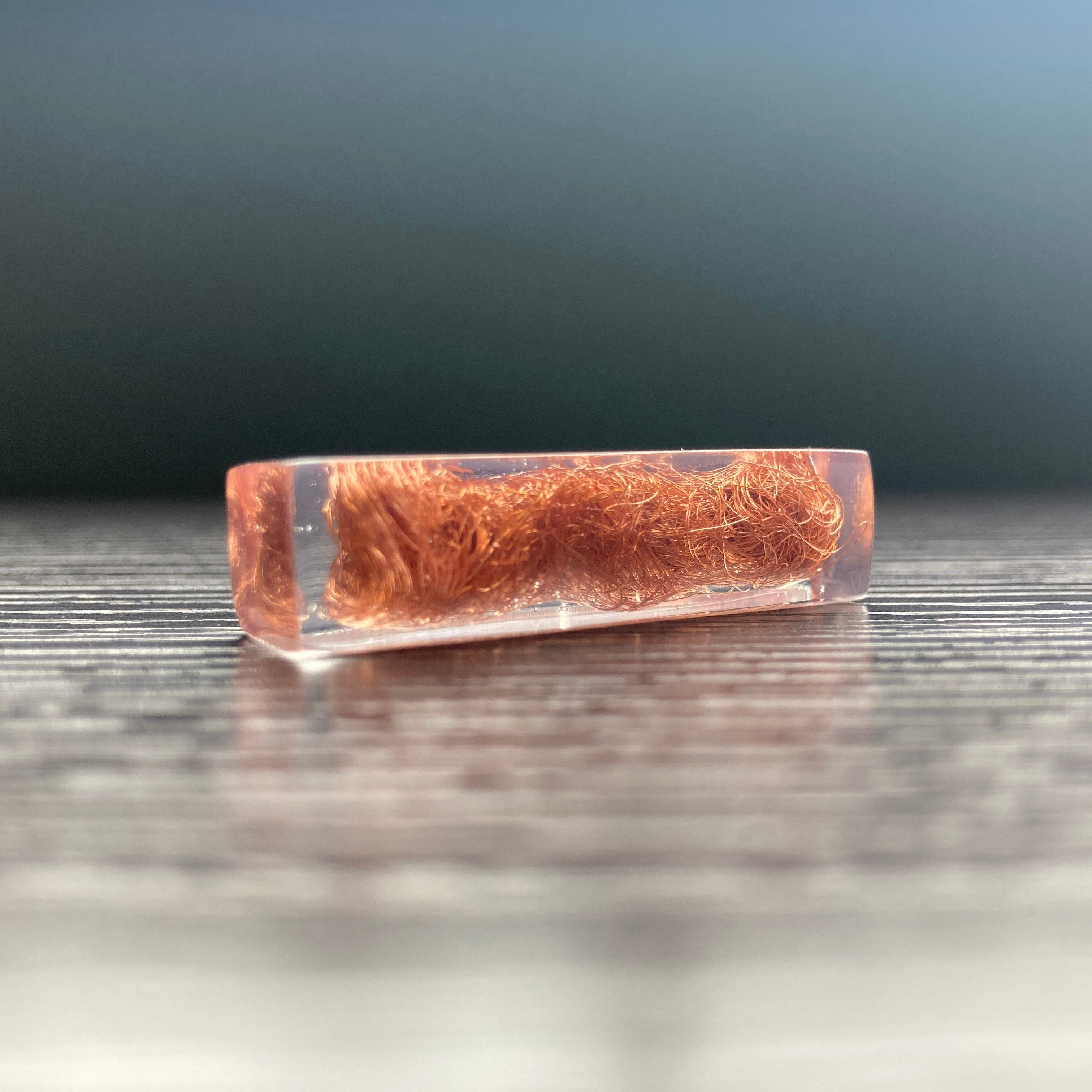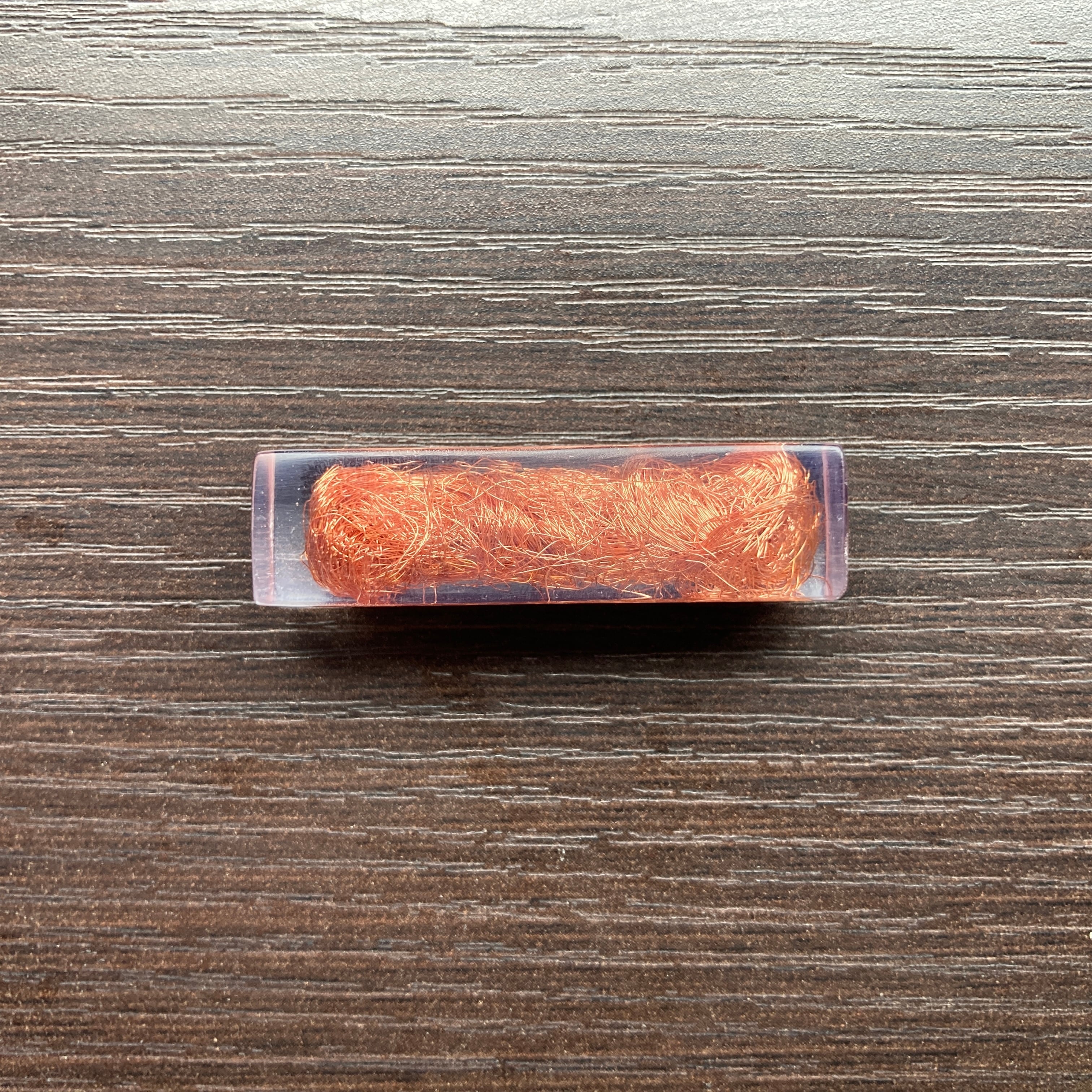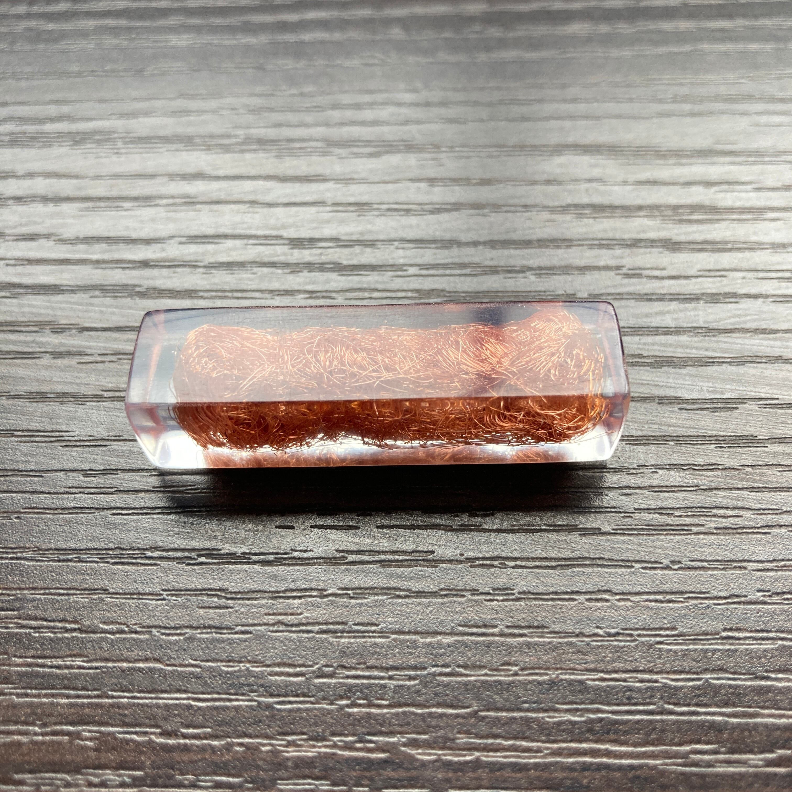 就労継続支援B型事業所の解体作業の中から出てきた「銅線」をレジンで閉じ込めて制作した箸置きです。